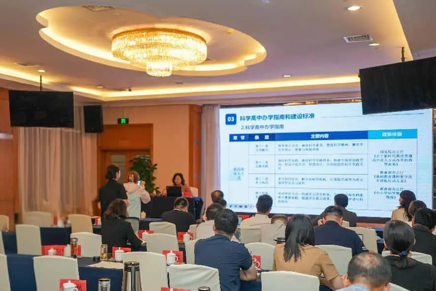 与此同时,高中组围绕“科学教育与双高衔接”主题展开了深度交流。南京市第一中学副校长高磊系统阐述了“大科学课堂”涵育科学家精神的具体路径,以及如何通过课程与机制创新夯实学生科学素养;南师附中秦淮科技高中副校长龚亮亮分享了“大科技教育”理念下科技拔尖创新后备人才培养的系统实践;南京天印高级中学校长张昌军聚焦个性化教育,强调尊重学生差异、激发个体潜能,构建多元发展通道;苏州工业园区星海实验高中党委书记周晓阳介绍了学校在AI赋能发现式学习方面的实践蓝图,展现了人工智能对传统教学模式的深刻重塑;南京师范大学附属中学实验初级中学书记朱广军以“高——大衔接”视角,探讨了示范高中育人模式对学生长期学业发展的积极影响。